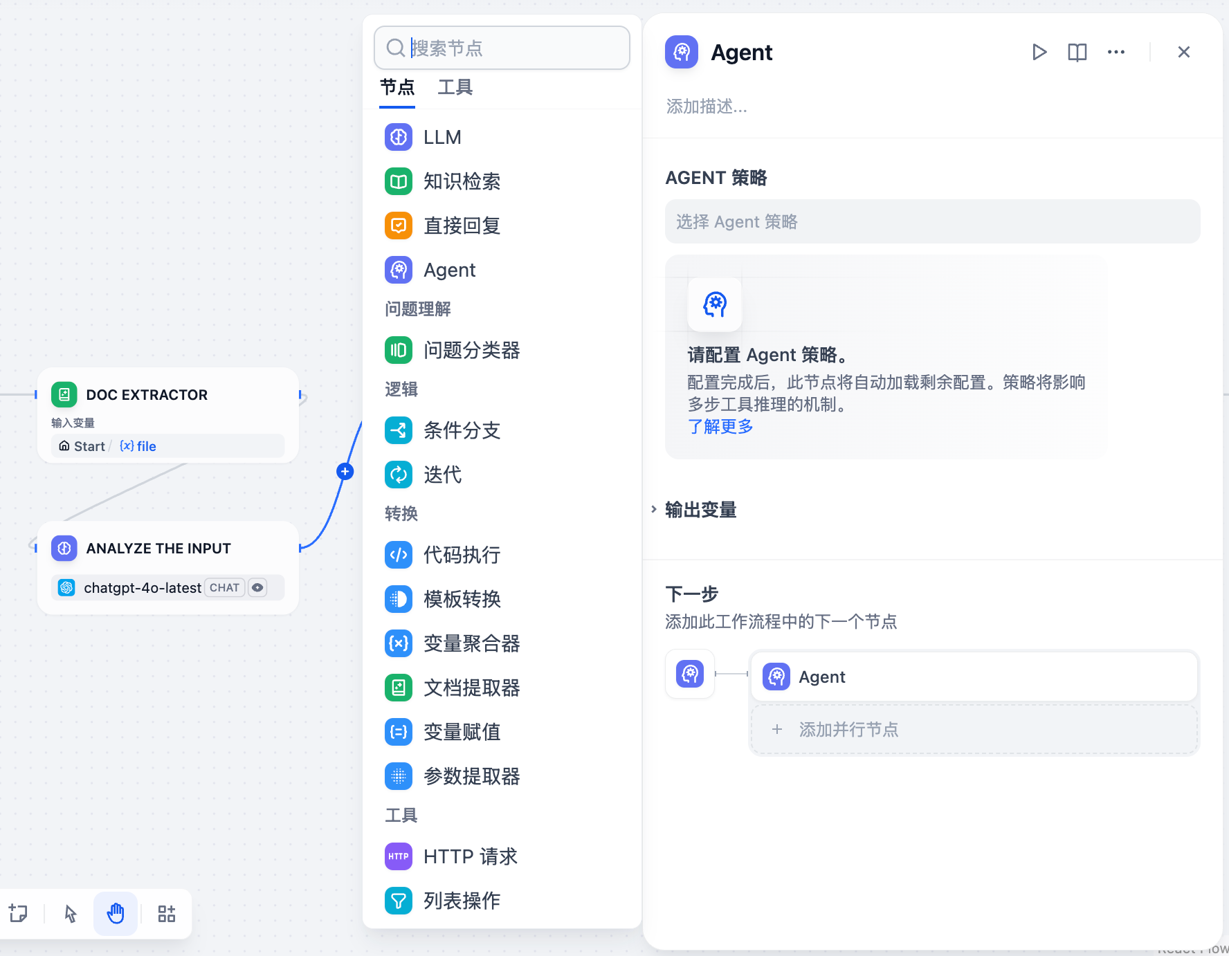 Workflow 和 Chatflow 类型应用由独立节点相构成。大部分节点设有输入和输出项,但每个节点的输入信息不一致,各个节点所输出的答复也不尽相同。