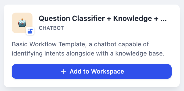 To use a template application, click the "Add to Workspace" button on the template. You can then use the application in the workspace on the left side.