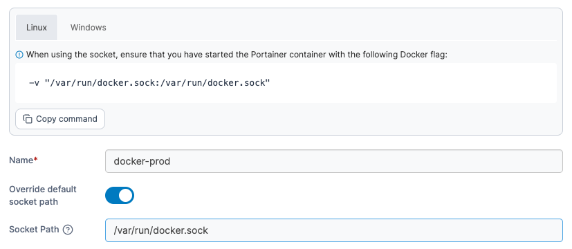 {% hint style="info" %} Ensure that if you change the Socket Path, that you update the required bind mount parameter above to suit. {% endhint %}