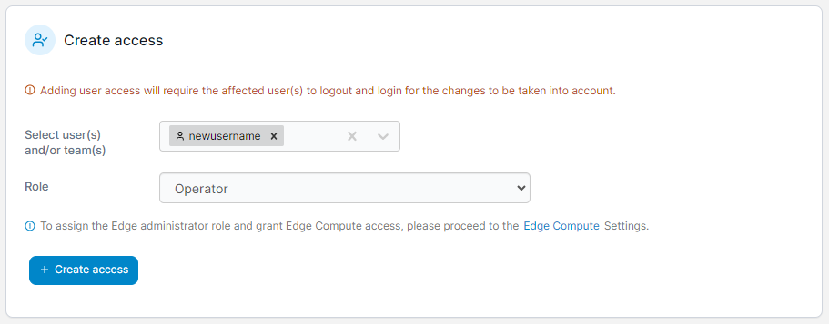 To add access, select the users or teams you want to add using the dropdown. Then use the Role dropdown to select the role you want this user or team to have.